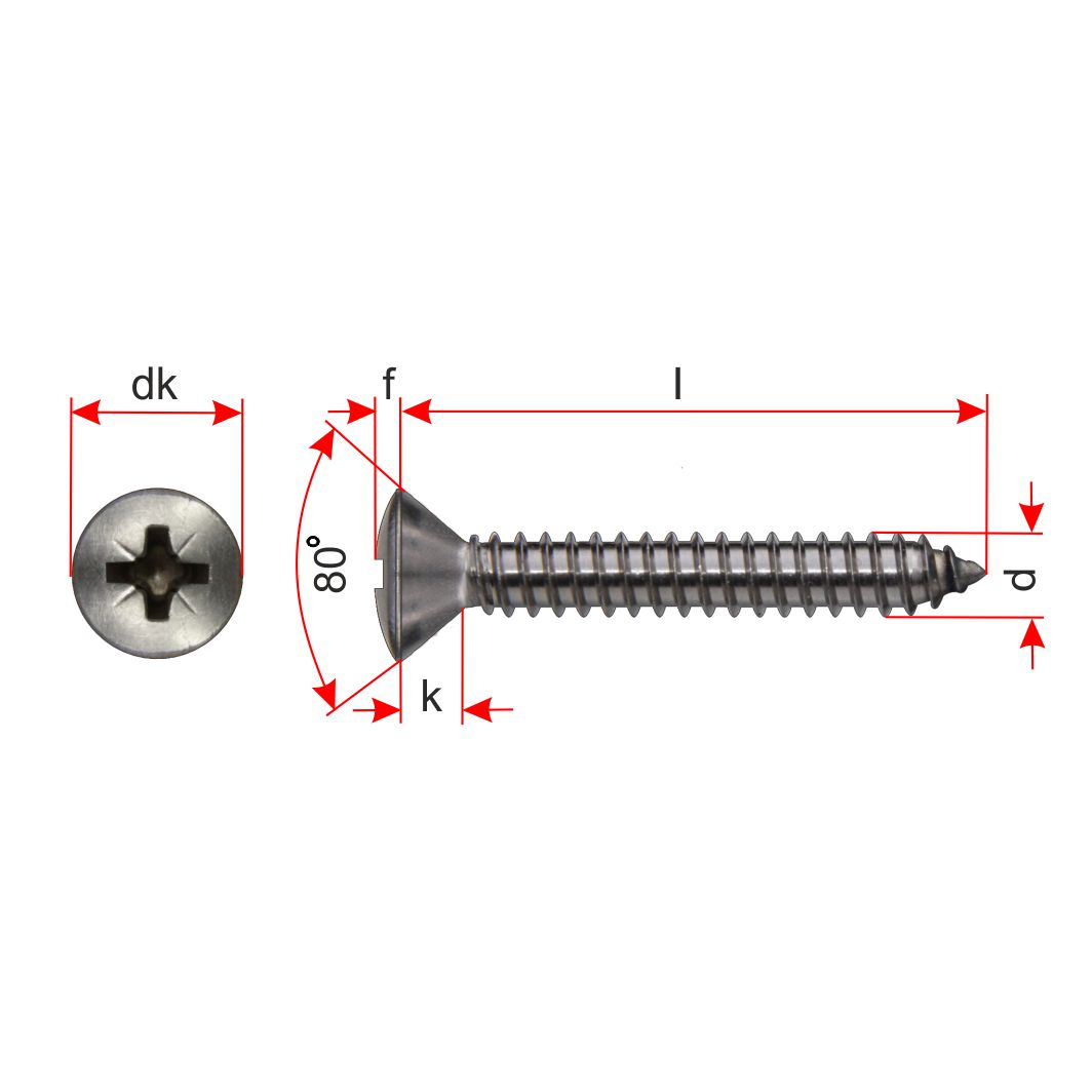 | Vis a tole a tete fraisée bombée a empreinte cruciforme, a bout pointu - Z | |