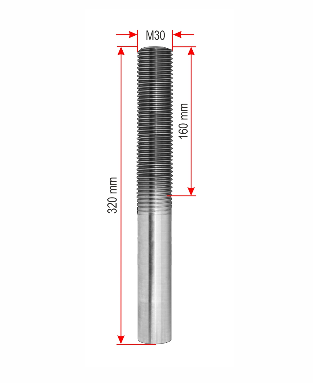 Anschweißenden M30 x 320 mm LINKS A4 Edelstahl ähnlich DIN 34828Bult ends M30 x 320 mm left stainless steel AISI 316
